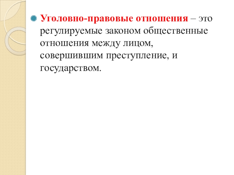 Слайд 5Уголовно-правовые отношения – это регулируемые законом общественные отношения между лицом, совершившим