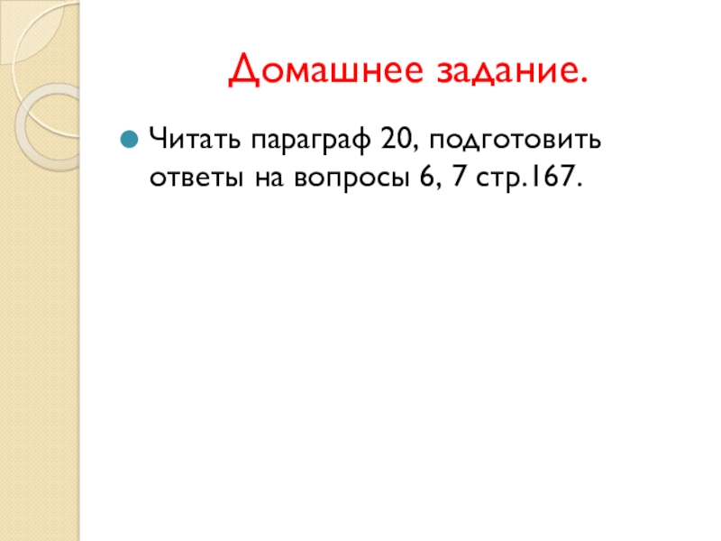 Читать параграф 20, подготовить ответы на вопросы 6, 7 стр.167.