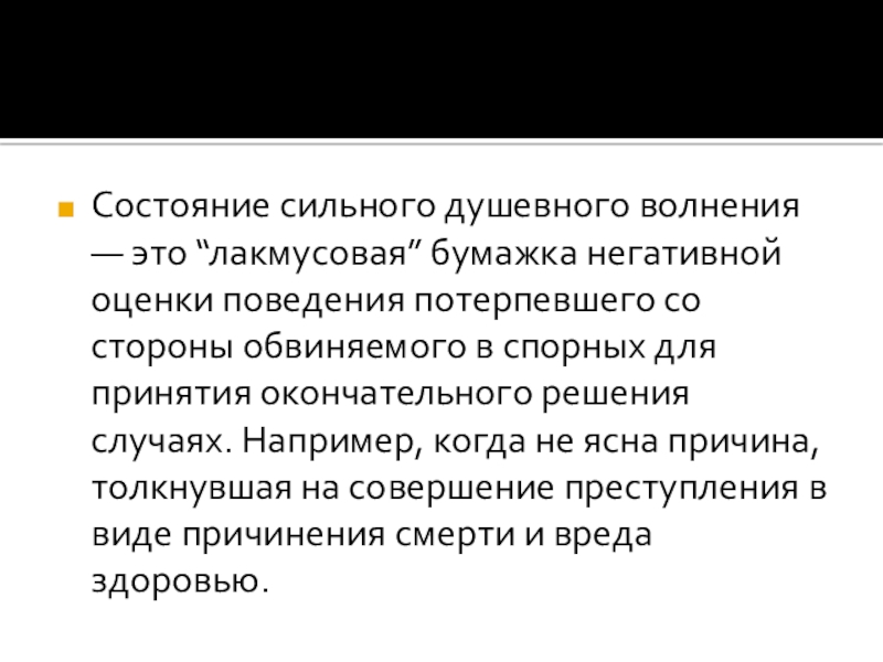 Слайд 23Состояние сильного душевного волнения — это непосредственная эмоциональная реакция виновного на