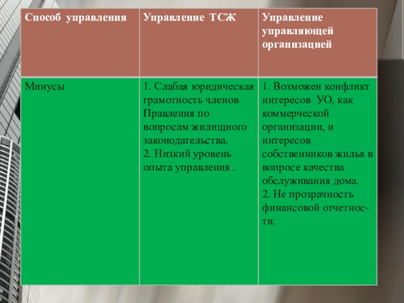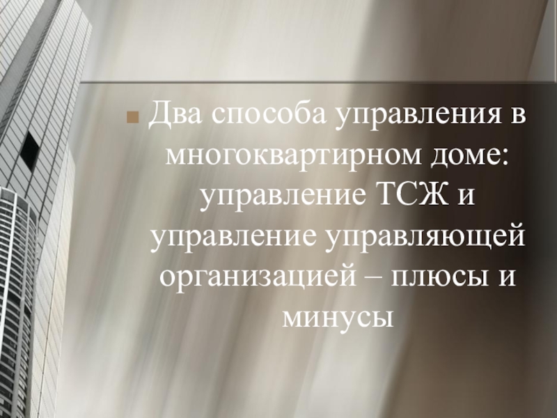Слайд 10Два способа управления в многоквартирном доме: управление ТСЖ и управление управляющей