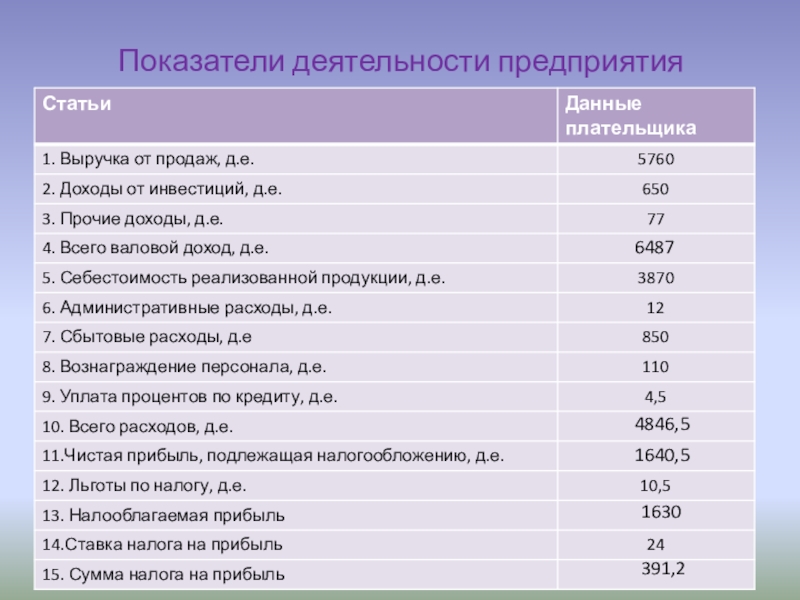 Показатели деятельности предприятия64874846,51640,51630391,2