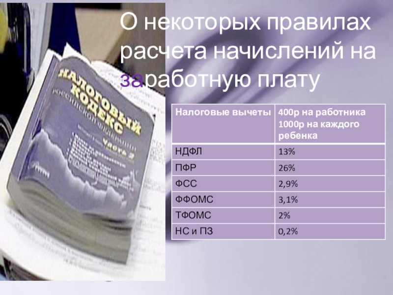 Слайд 4О некоторых правилах расчета начислений на заработную плату