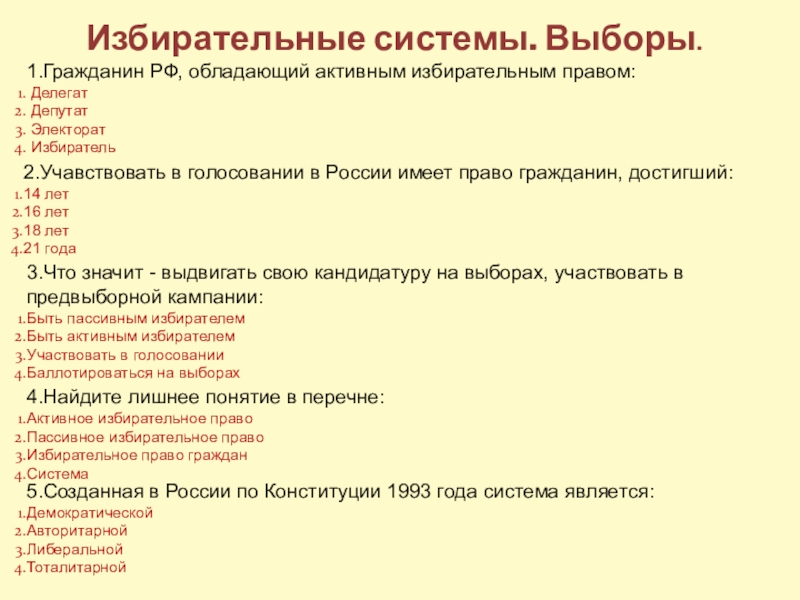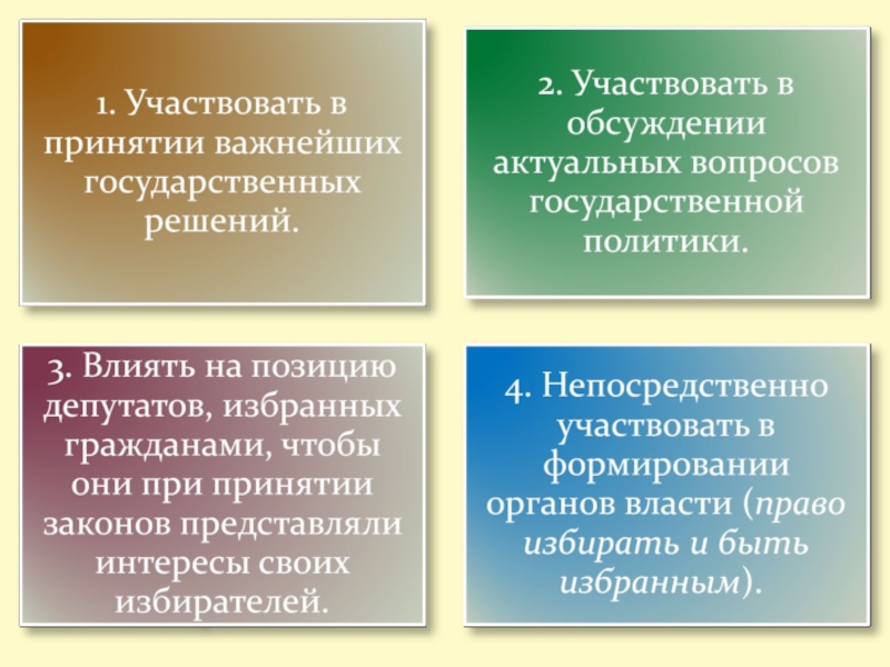 1. Какие права призваны обеспечить активное участие граждан в жизни страны: