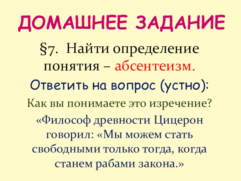 А. В правовом государстве существует сознательная дисциплина граждан и порядок.