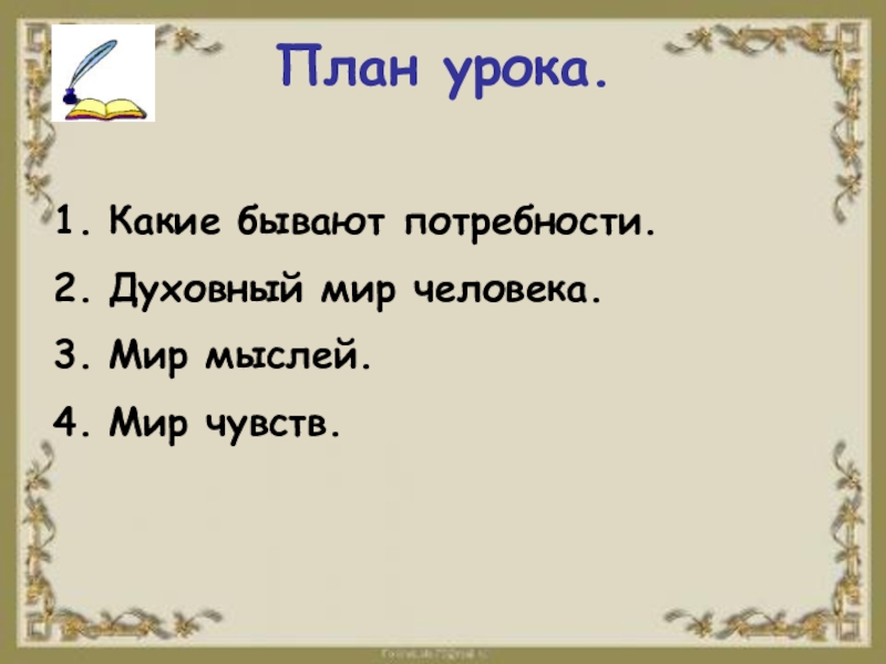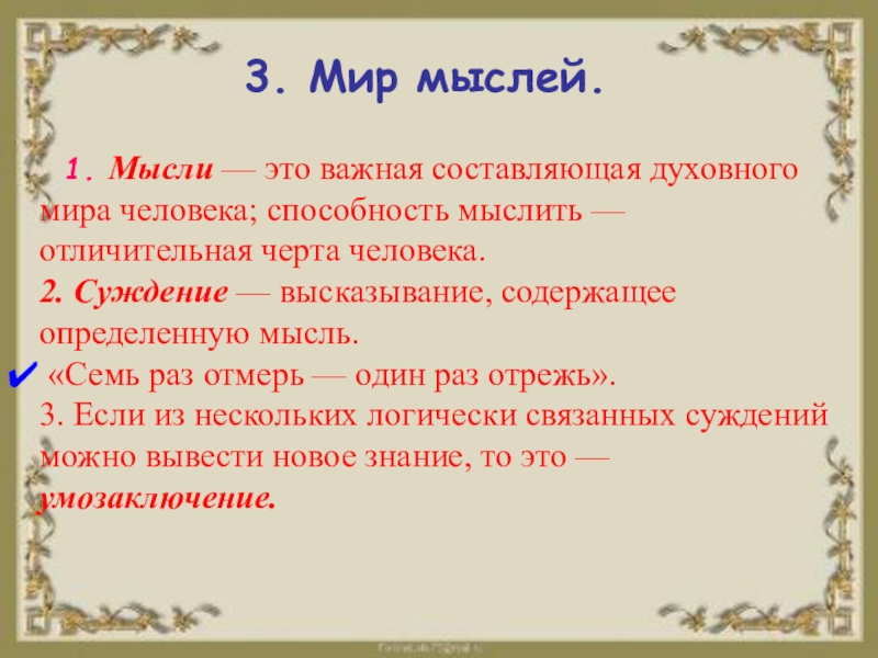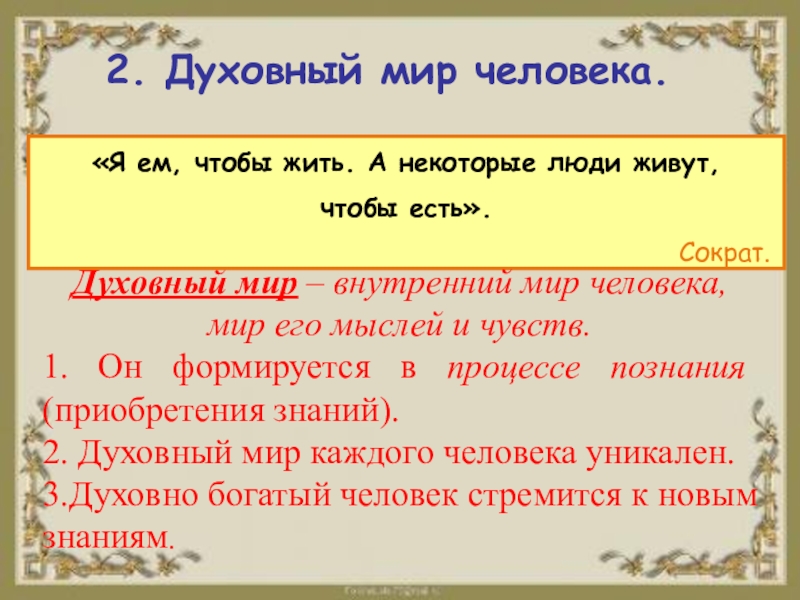 Духовный мир – внутренний мир человека, мир его мыслей и чувств.