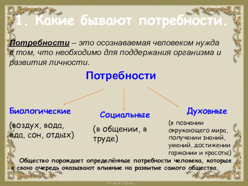 Общество порождает определённые потребности человека, которые в свою очередь оказывают влияние на развитие самого общества.