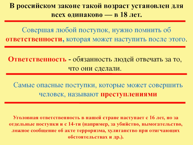 Совершая любой поступок, нужно помнить об ответственности, которая может наступить после этого.