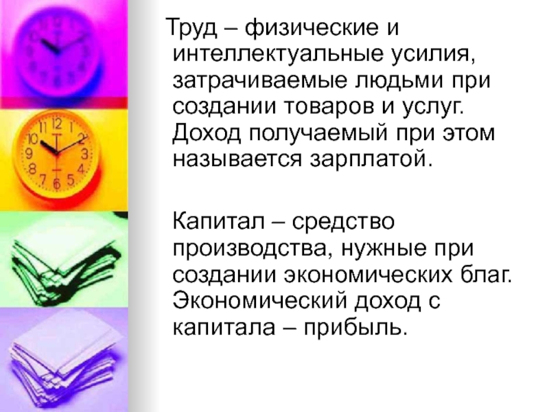Труд – физические и интеллектуальные усилия, затрачиваемые людьми при создании товаров и услуг. Доход получаемый при