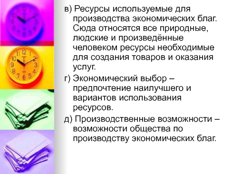 Слайд 3в) Ресурсы используемые для производства экономических благ. Сюда относятся все природные,