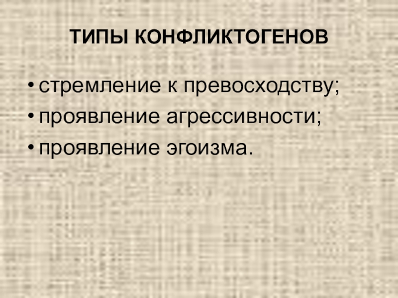 Слайд 15ТИПЫ КОНФЛИКТОГЕНОВ