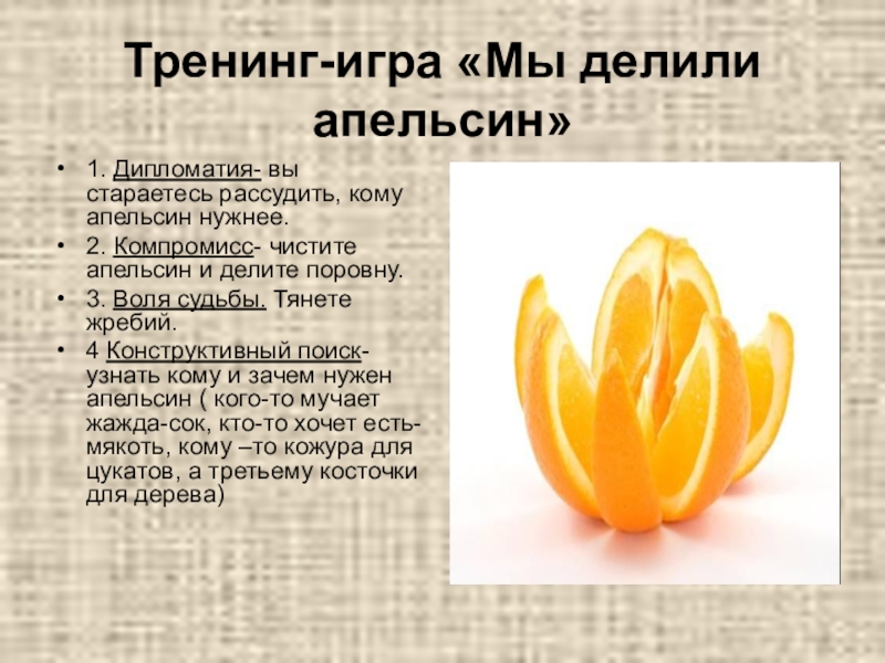 Слайд 20Тренинг-игра «Мы делили апельсин»