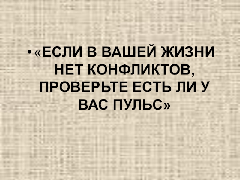 «ЕСЛИ В ВАШЕЙ ЖИЗНИ НЕТ КОНФЛИКТОВ, ПРОВЕРЬТЕ ЕСТЬ ЛИ У ВАС