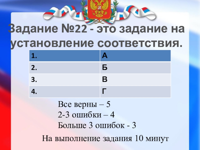 На выполнение задания 10 минут