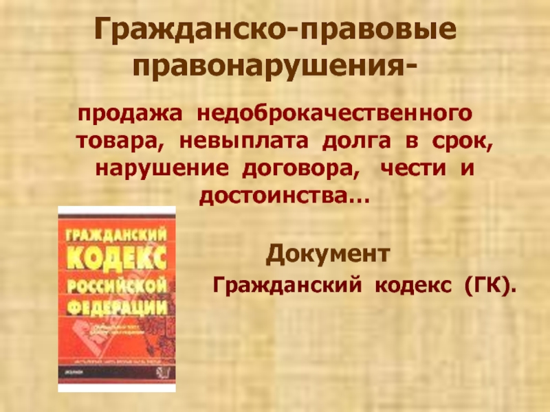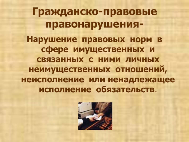 Слайд 15Гражданско-правовые правонарушения