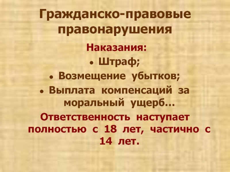 Слайд 14Гражданско-правовые правонарушения-