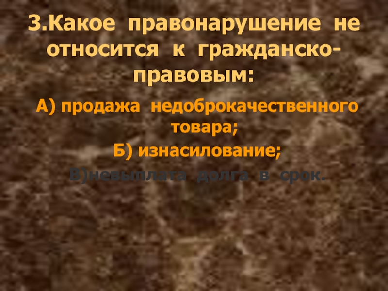 Слайд 333.Какое правонарушение не относится к гражданско-правовым:
