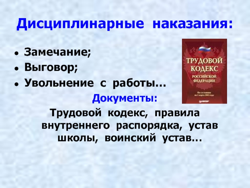 Слайд 10Дисциплинарные наказания: