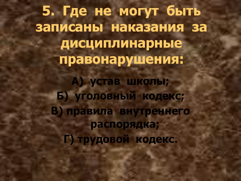 Слайд 355. Где не могут быть записаны наказания за дисциплинарные правонарушения: