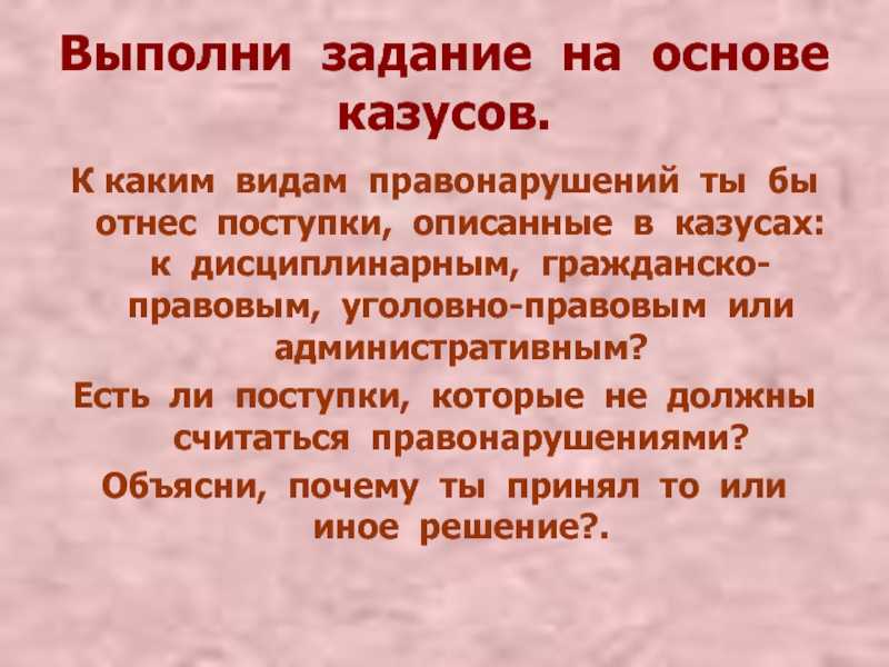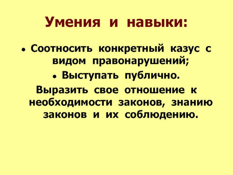 Соотносить конкретный казус с видом правонарушений;