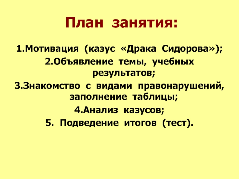 1.Мотивация (казус «Драка Сидорова»);