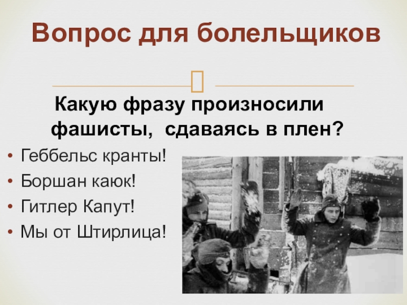 Какую фразу произносили фашисты, сдаваясь в плен?