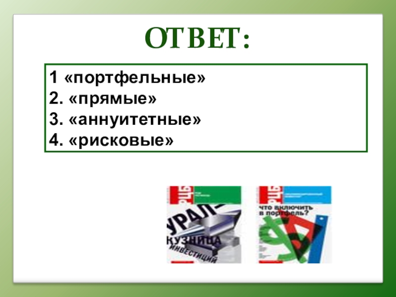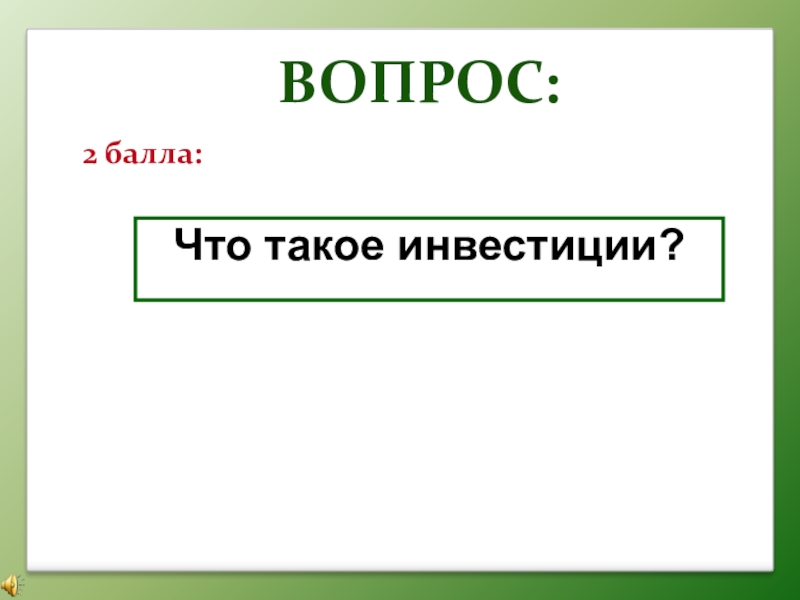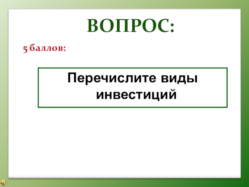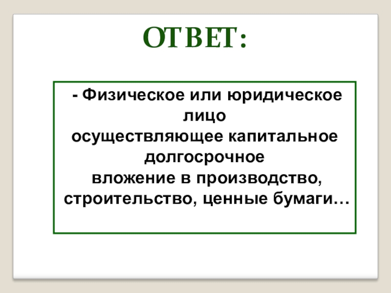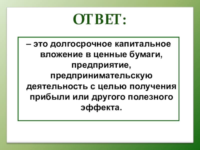 – это долгосрочное капитальное вложение в ценные бумаги, предприятие, предпринимательскую