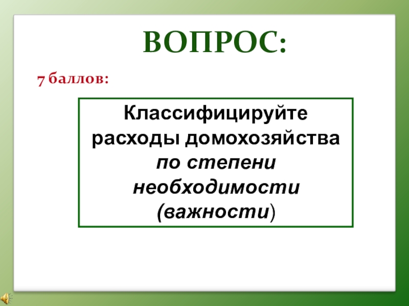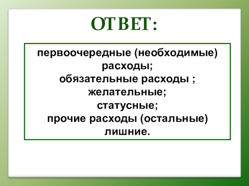 Классифицируйте расходы домохозяйства по степени необходимости (важности)