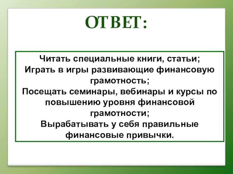 вебинары и курсы по повышению уровня финансовой грамотности;