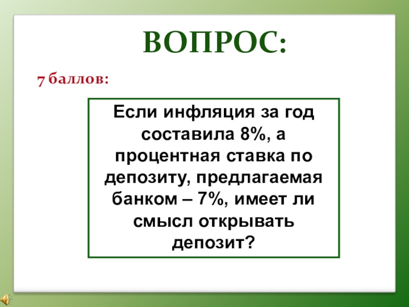 ставка по депозиту, предлагаемая банком – 7%, имеет ли смысл открывать депозит?