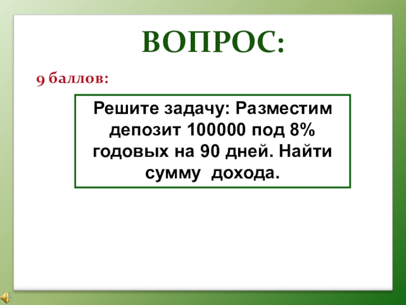 Решите задачу: Разместим депозит 100000 под 8% годовых