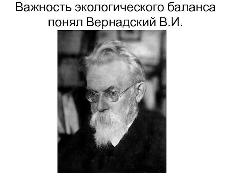 Слайд 10Важность экологического баланса понял Вернадский В.И.