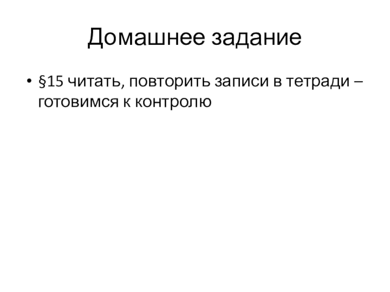 Домашнее задание§15 читать, повторить записи в тетради – готовимся к контролю