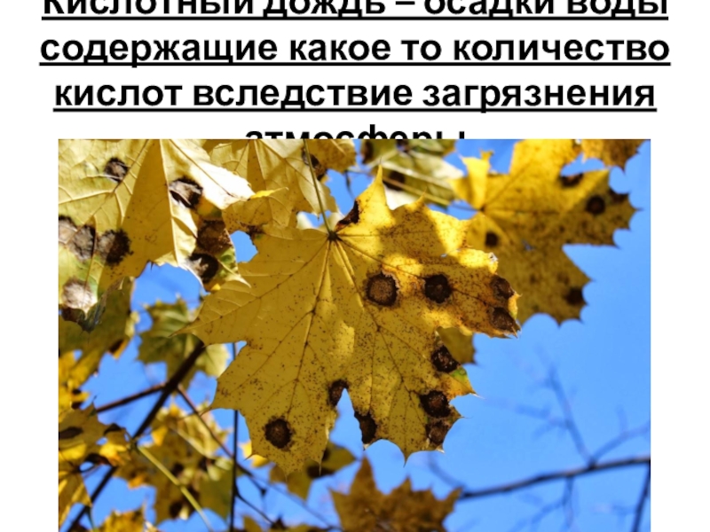 Кислотный дождь – осадки воды содержащие какое то количество кислот вследствие загрязнения атмосферы