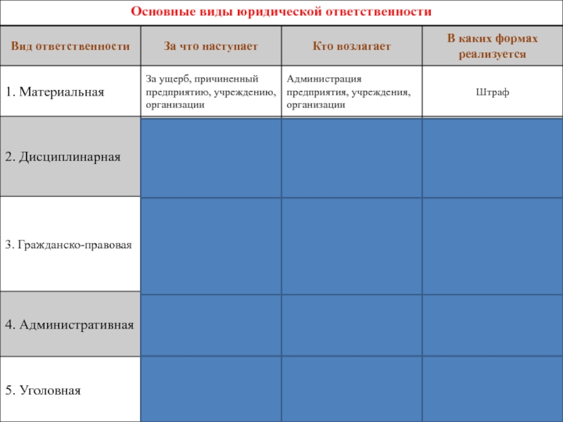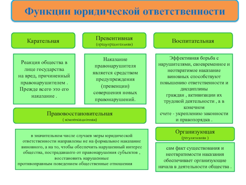 Всегда имеет неблагоприятные последствия для правонарушителя: имущественные (материальные) моральные , физические , политические