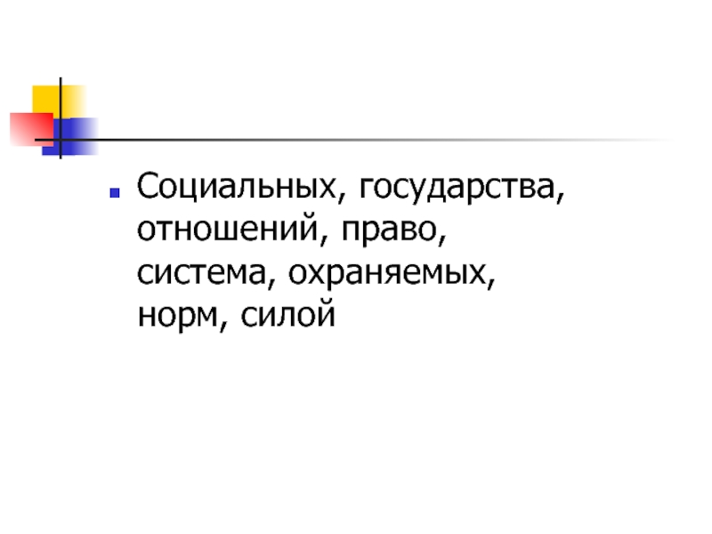 Слайд 2Социальных, государства, отношений, право, система, охраняемых, норм, силой