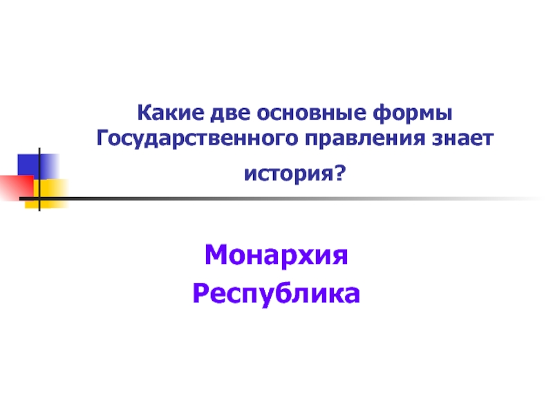 Слайд 22Какие две основные формы Государственного правления знает история?