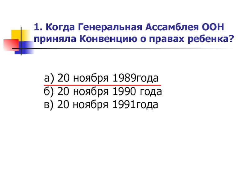 1. Когда Генеральная Ассамблея ООН приняла Конвенцию о правах ребенка?