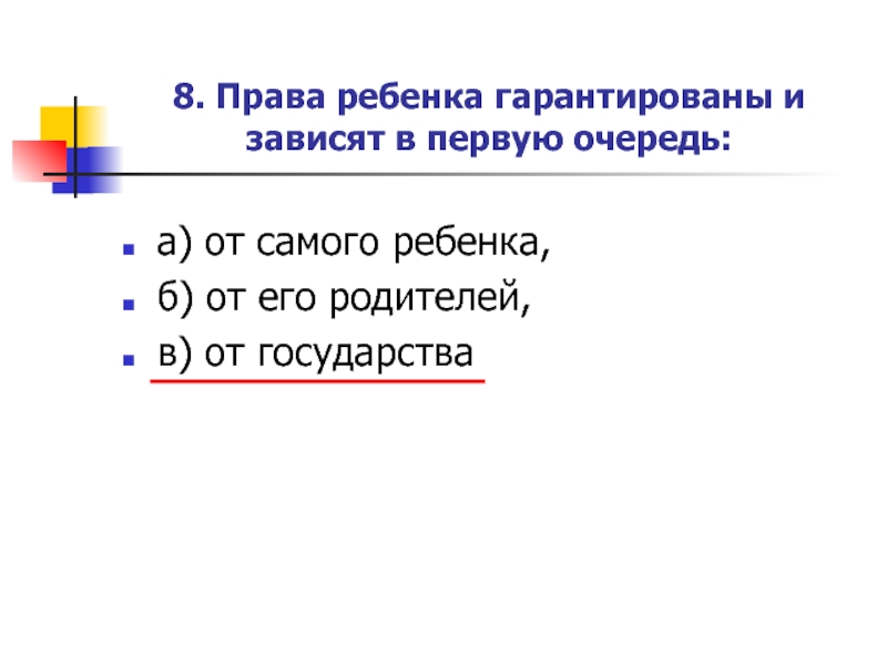 Слайд 358. Права ребенка гарантированы и зависят в первую очередь: