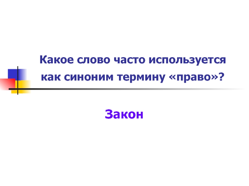 Слайд 20Какое слово часто используется как синоним термину «право»?