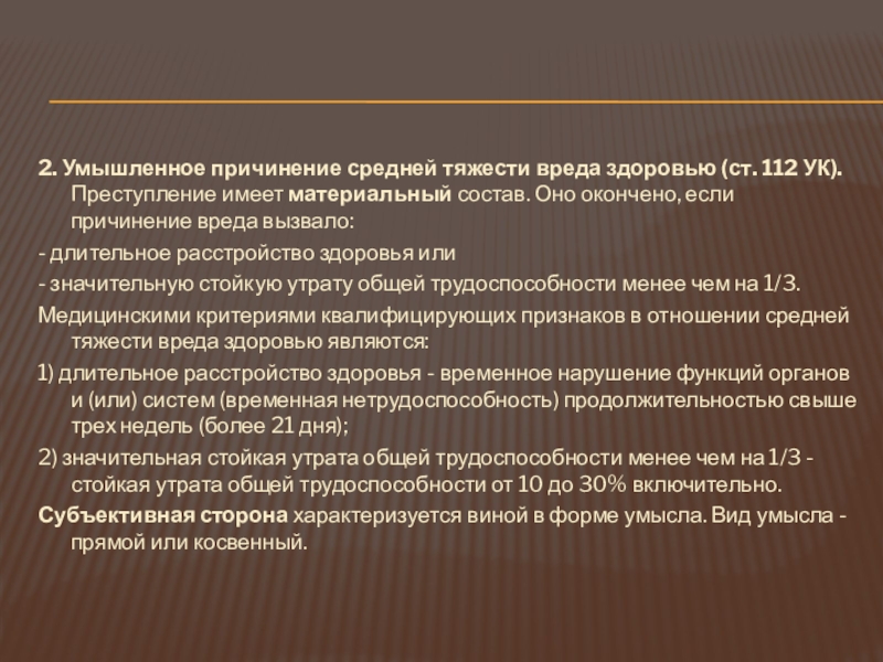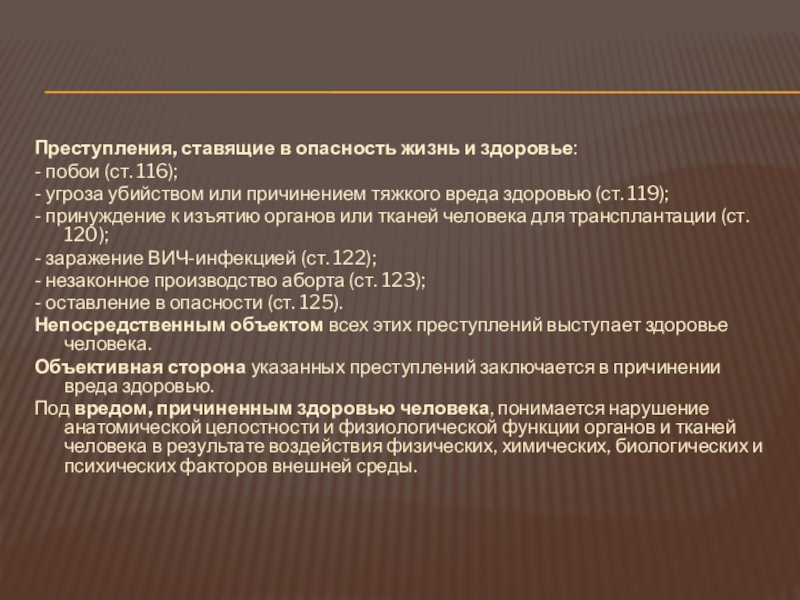 Слайд 21. Понятие и виды преступлений против жизни и здоровья