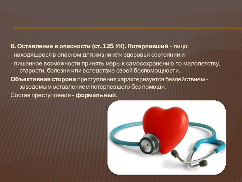 Слайд 376. Оставление в опасности (ст. 125 УК). Потерпевший - лицо: