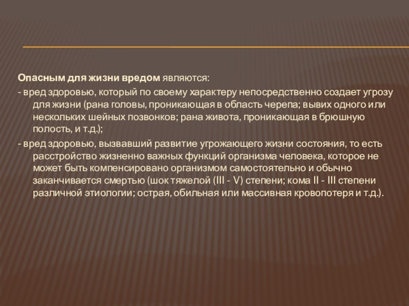 - само поставившее потерпевшего в опасное для жизни или здоровья состояние.