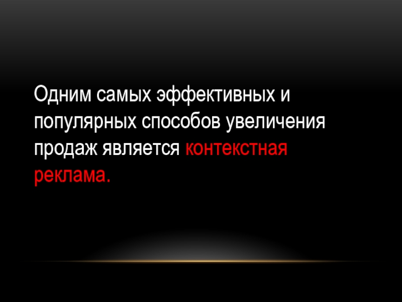 Слайд 6Одним самых эффективных и популярных способов увеличения продаж является контекстная реклама.