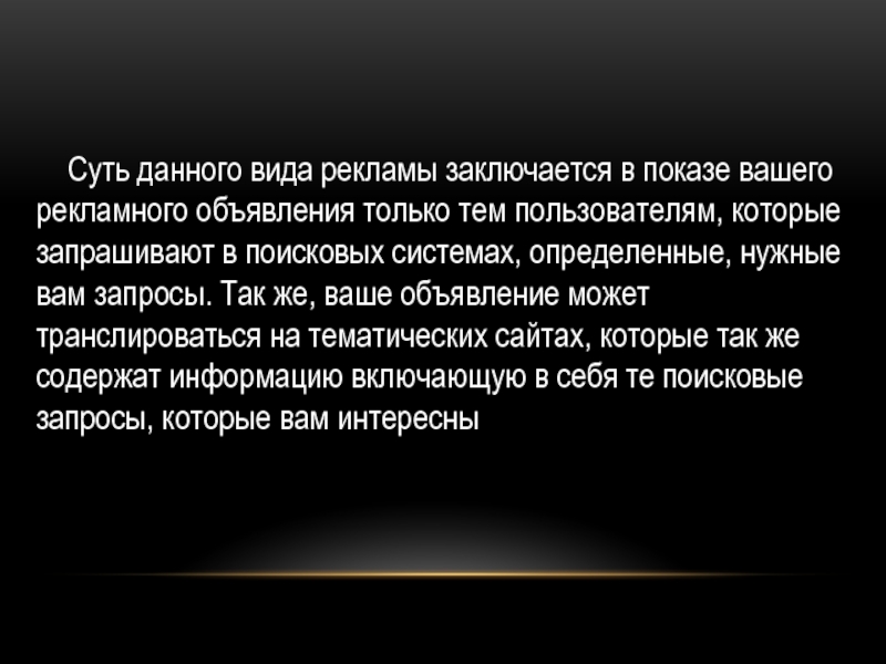 Слайд 7     Суть данного вида рекламы заключается в показе вашего рекламного объявления только