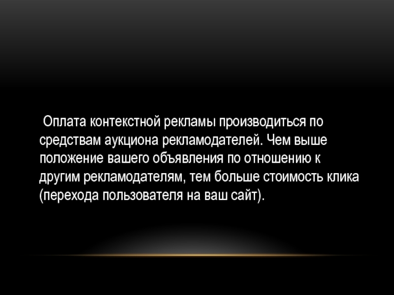 Слайд 8 Оплата контекстной рекламы производиться по средствам аукциона рекламодателей. Чем выше