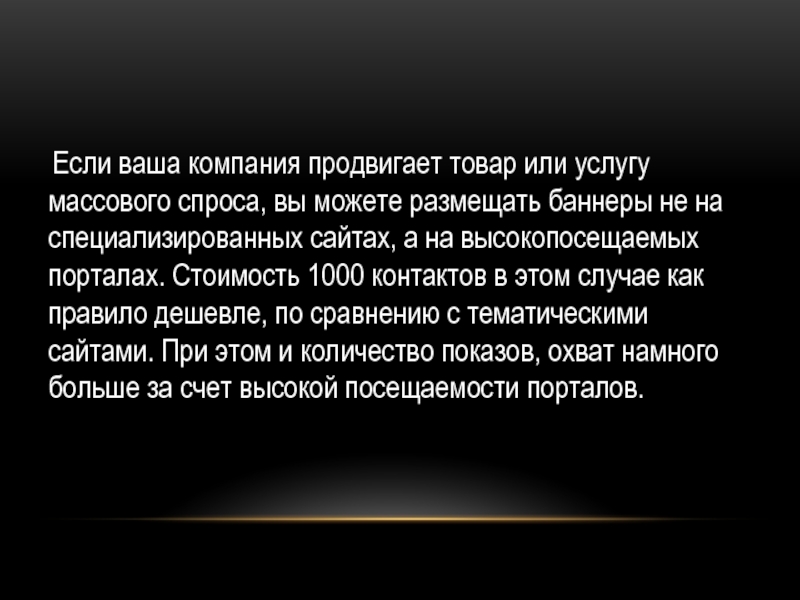 Если ваша компания продвигает товар или услугу массового спроса, вы можете размещать баннеры не на специализированных