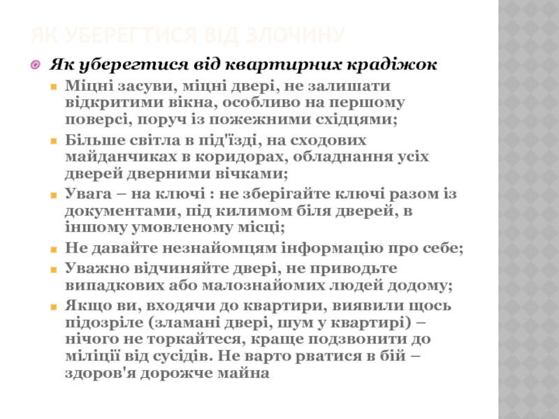 Слайд 10ЯК УБЕРЕГТИСЯ ВІД ЗЛОЧИНУ