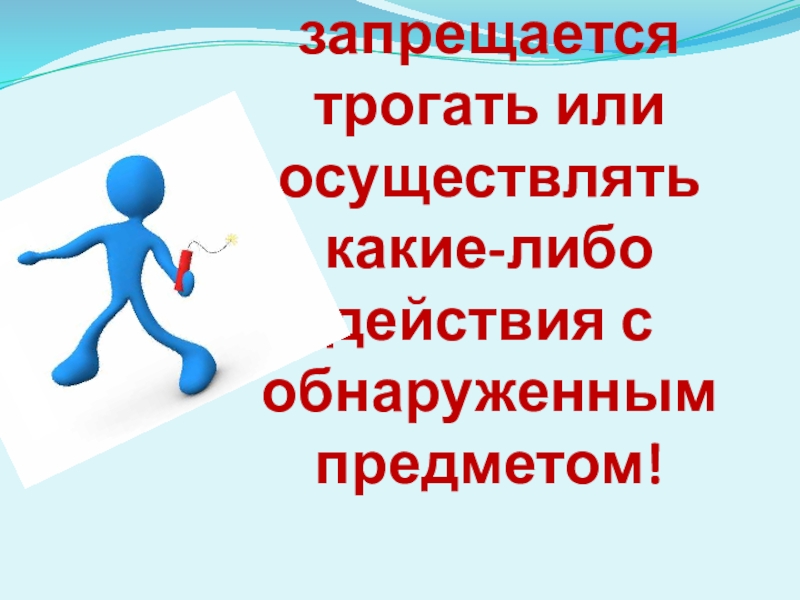 Слайд 8Категорически запрещается трогать или осуществлять какие-либо действия с обнаруженным предметом!