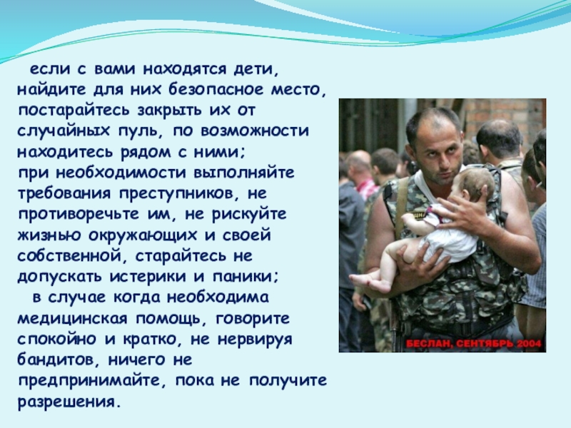 Слайд 12 если с вами находятся дети, найдите для них безопасное место,