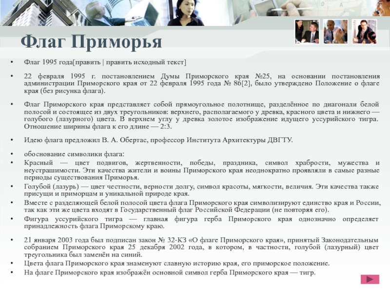 Цвета флага Приморского края знаменуют славную историю края, его приморское положение.